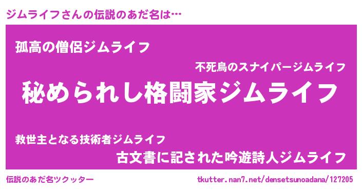 | 意味不明あだ名 | 『ジムライフフォーエバー』 |