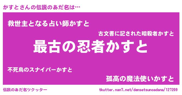 | 男性向けラノベタイトル風あだ名 | 『かすとに滅ぼされるだけの簡単なお仕事です』 |