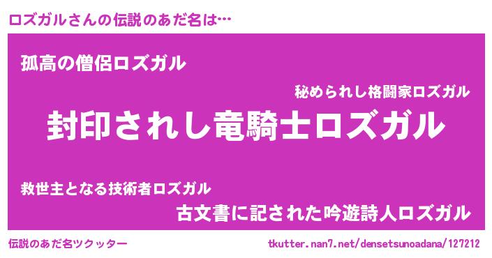 | ファンタジー風あだ名 | 『ロズフェル』『ゼロズトゥ』 |