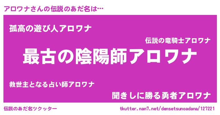 | ヘコむあだ名 | 『豆乳』『アロぷりん』『アロもー』 |