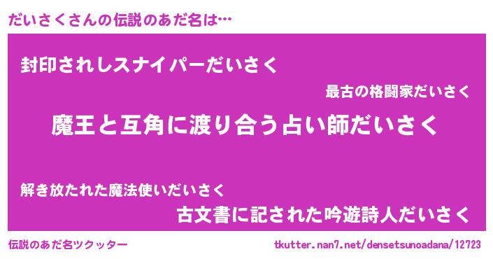 | ヒーロー風カッコイイあだ名 | 『慈愛の使者だいさく』『仮面ダイダー』 |