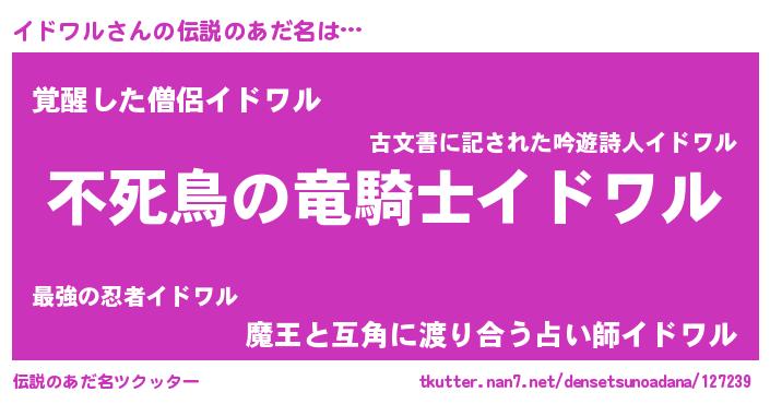 | ヒーロー風カッコイイあだ名 | 『仮面イドダー』『ウルトラ戦士イドワル』 |