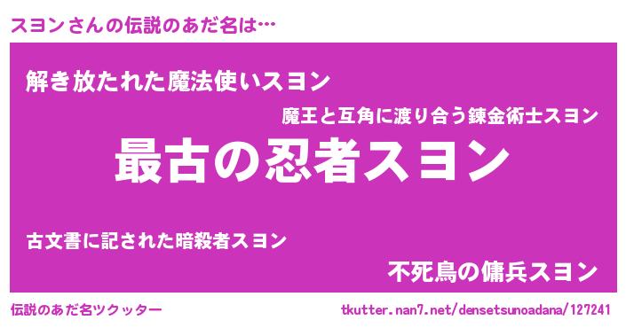 | ヘコむあだ名 | 『なまこ酢』『スヨお』『スヨふぇ~』 |