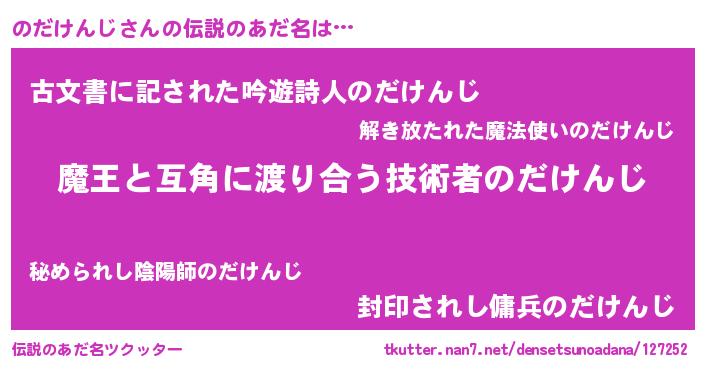 | 男性向けラノベタイトル風あだ名 | 『転生したらのだけんじだった件』 |