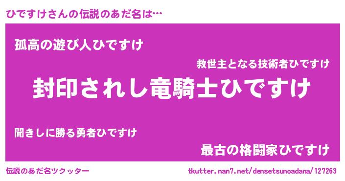 | 男性向けラノベタイトル風あだ名 | 『Re:ひですけから始める異世界生活』 |