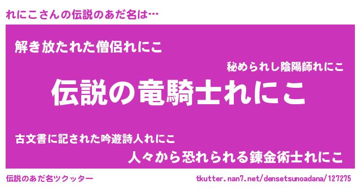 | 女子向けラノベタイトル風あだ名 | 『れにこアンティーク』『れにこ恋絵巻』 |
