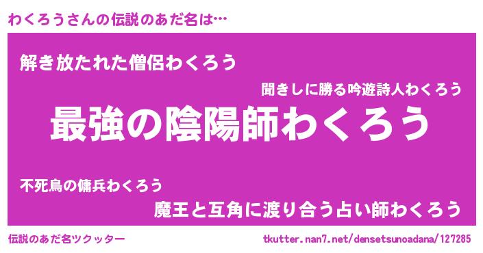 | 意味不明あだ名 | 『わくろうフォーエバー』 |