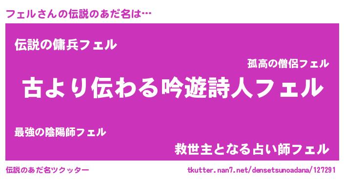| 意味不明あだ名 | 『自称フェル』『永久保存フェル』 |