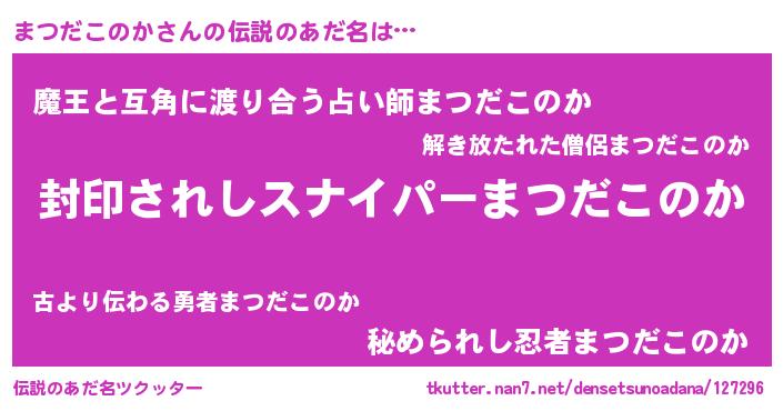 | 男性向けラノベタイトル風あだ名 | 『うちのまつだこのかが世界を掌握している!』 |