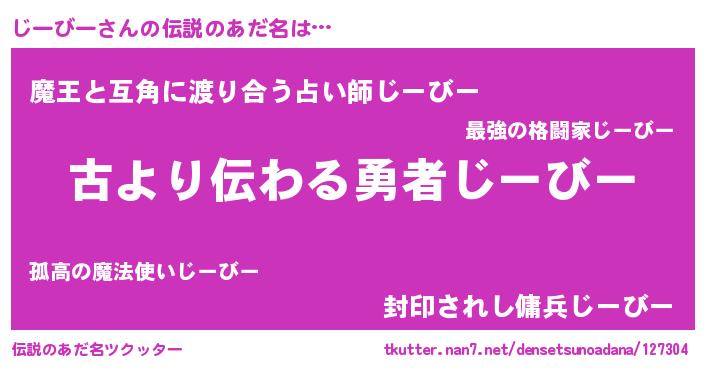 | 意味不明あだ名 | 『永久保存じーびー』『自称じーびー』 |