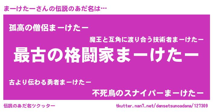 | 意味不明あだ名 | 『まーけたーフォーエバー』 |