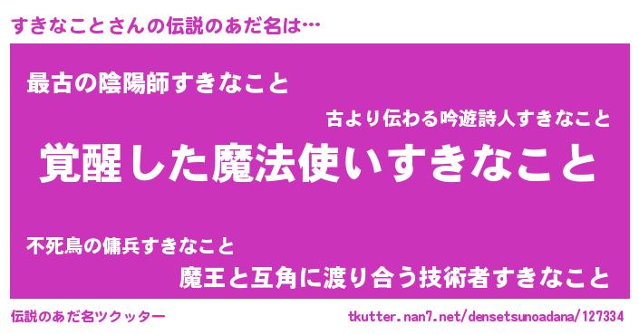 | 男性向けラノベタイトル風あだ名 | 『すきなことの嫁は女の子じゃないと思った?』 |