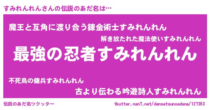 | 意味不明あだ名 | 『住所不定無職すみれんれん(40歳)』 |