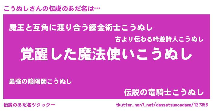 | 男性向けラノベタイトル風あだ名 | 『こうぬしの嫁は女の子じゃないと思った?』 |