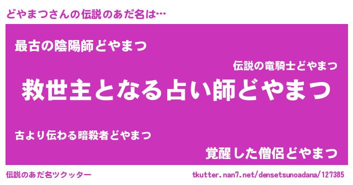 | ヒーロー風カッコイイあだ名 | 『仮面ドヤダー』『慈愛の使者どやまつ』 |