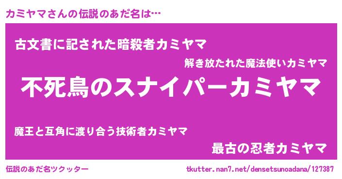 | ヒーロー風カッコイイあだ名 | 『スーパーカミヤマ』『ネオカミヤマ』 |