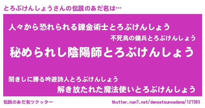 | 意味不明あだ名 | 『とろぶけんしょうフォーエバー』 |