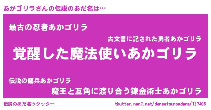 | ヒーロー風カッコイイあだ名 | 『幻影騎士アカ』『最強戦士アカゴリラ』 |
