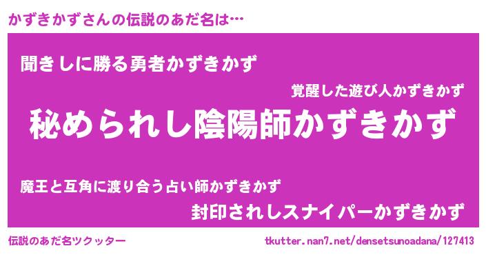| 欧米人風あだ名 | 『かずきかずクリステル』 |