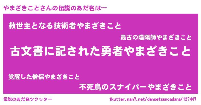 | ヒーロー風カッコイイあだ名 | 『ネオヤマザキコト』『仮面ヤマダー』 |