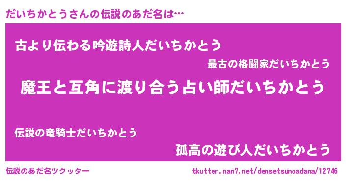 | ヘコむあだ名 | 『だいちかとう(爆)』『だいっぺ』 |