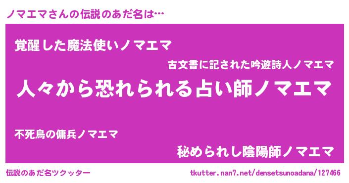 | ヒーロー風カッコイイあだ名 | 『友情の使者ノマエマ』『暗黒騎士ノマ』 |