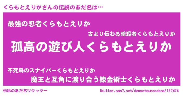| 意味不明あだ名 | 『住所不定無職くらもとえりか(89歳)』 |