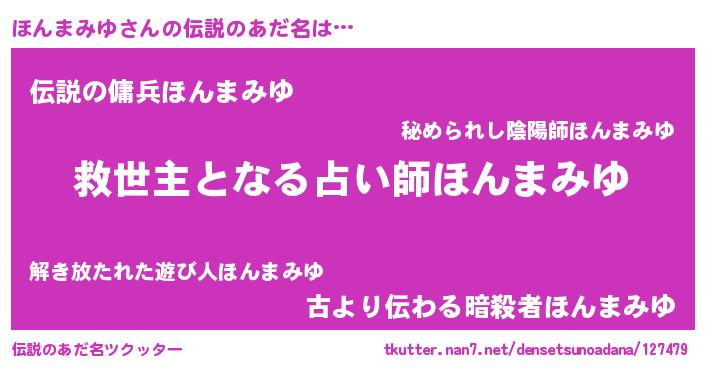 | ヒーロー風カッコイイあだ名 | 『天空の使者ほんまみゆ』『仮面ホンダー』 |