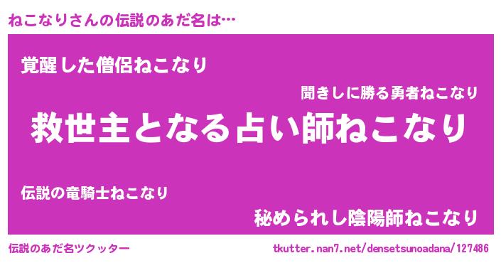 | ヒーロー風カッコイイあだ名 | 『天空の使者ねこなり』『黄金騎士ネコ』 |