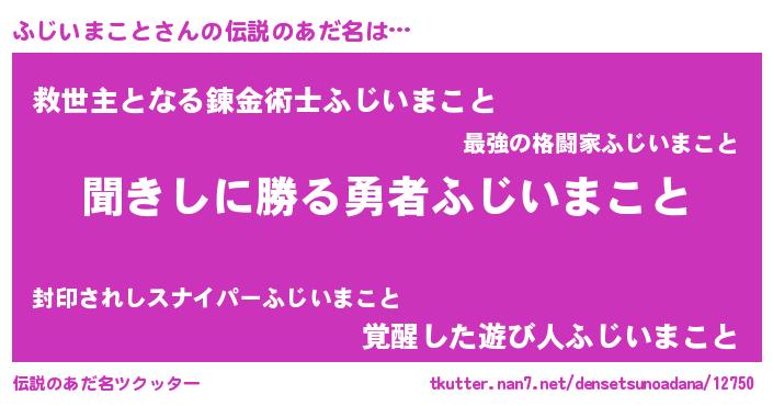 | 男性向けラノベタイトル風あだ名 | 『フジイマコトスレイヤー』 |