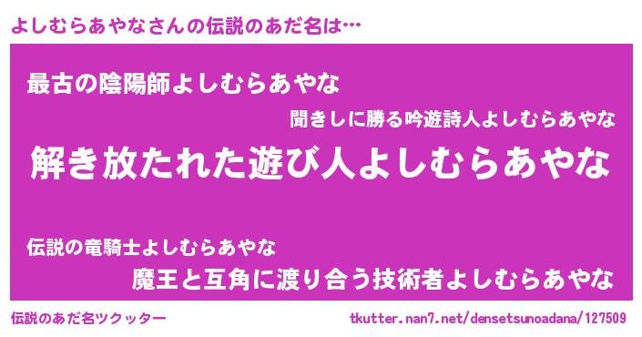 | 意味不明あだ名 | 『とにかく怪しいよしむらあやな』 |