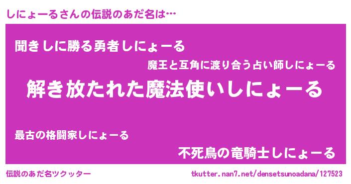 | 男性向けラノベタイトル風あだ名 | 『転生したらしにょーるだった件』 |