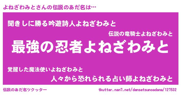 | ポケモン風あだ名 | 『ヨネザダネ』『ゼニヨネ』 |