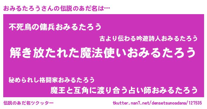 | 胡散臭い通販商品みたいなあだ名 | 『伝統あるサプリメント…その名も「おみるたろう」』 |
