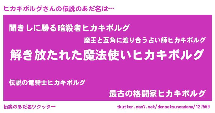 | ポケモン風あだ名 | 『ヒヒカキボルグ』『ヒカゴンZ』 |