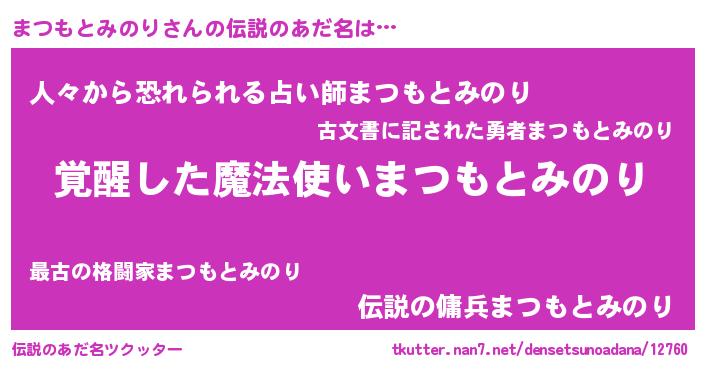 | 男性向けラノベタイトル風あだ名 | 『この素晴らしい世界にまつもとみのりを!』 |