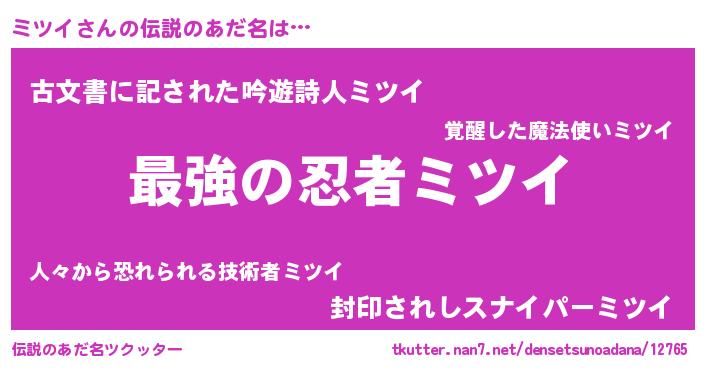 | ファンタジー風あだ名 | 『エターナルミツイー』『ゼミツトゥ』 |