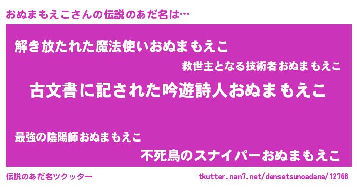 | ヘコむあだ名 | 『おぬまもえこ(笑)』『おぬ太郎』 |