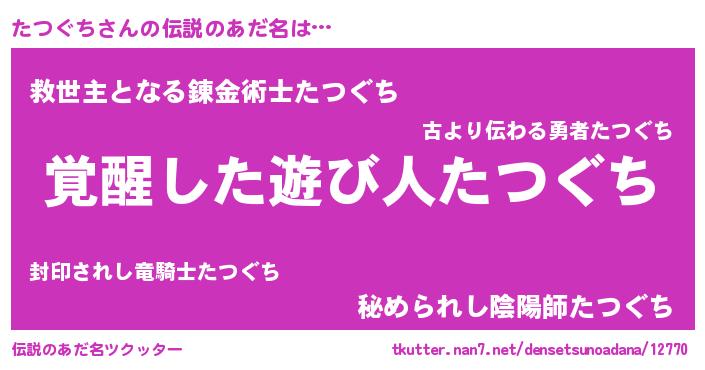 | ヒーロー風カッコイイあだ名 | 『仮面タツダー』『天弓騎士タツ』 |