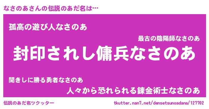 | 胡散臭い通販商品みたいなあだ名 | 『億万長者になれる水晶球…その名も「なさのあ」』 |