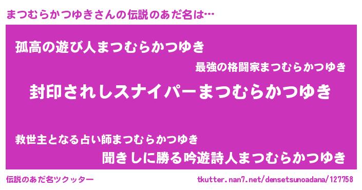 | ヒーロー風カッコイイあだ名 | 『スーパーマツムラカツユキ』 |