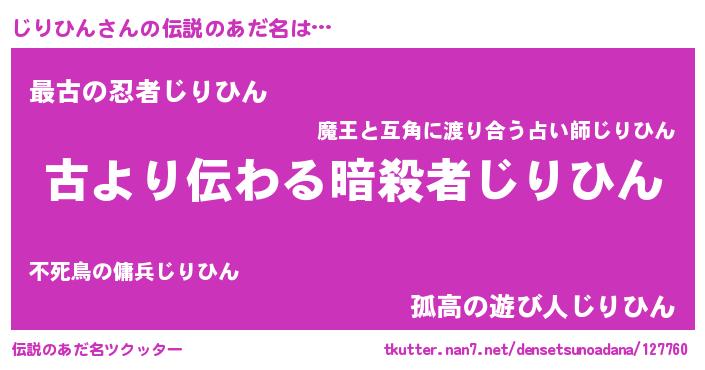 | 意味不明あだ名 | 『住所不定無職じりひん(53歳)』 |