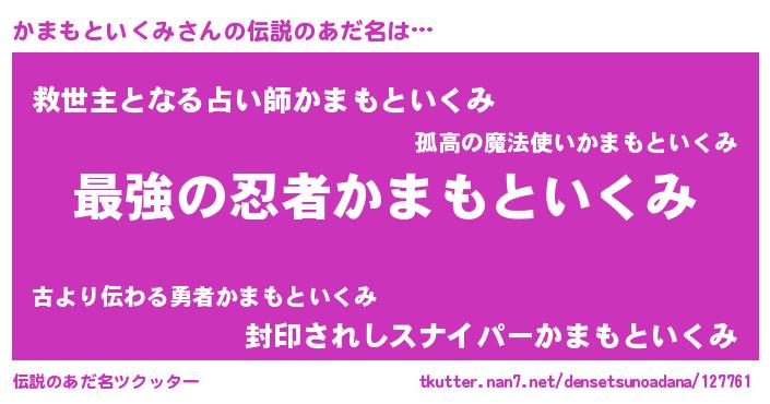 | 意味不明あだ名 | 『住所不定無職かまもといくみ(43歳)』 |