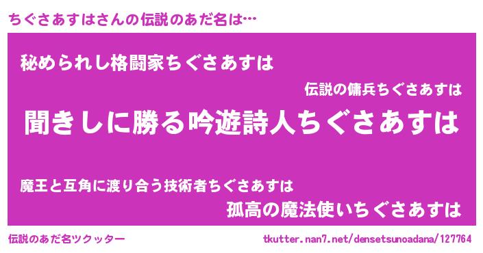 | 恥ずかしいあだ名 | 『チグサアスハデラックス』『ちぐちん』 |