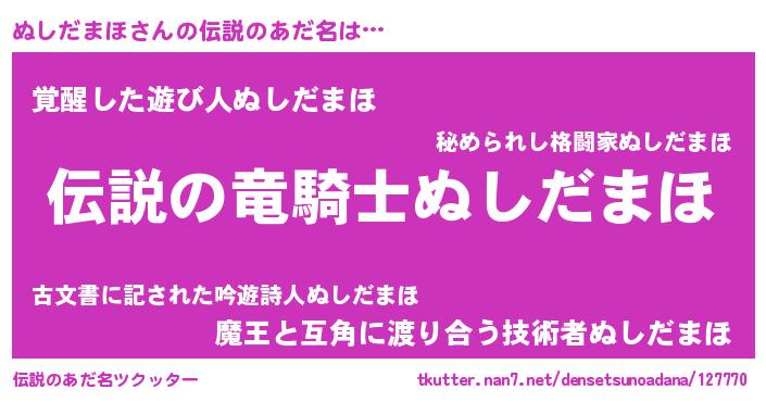 | 肩書あだ名 | 『ぬしだまほ社長』『ぬしだまほ大佐』 |