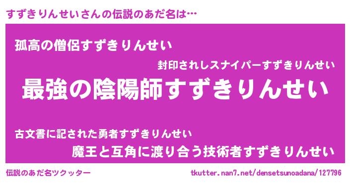 | ファンタジー風あだ名 | 『エターナルスズキリンセイー』 |