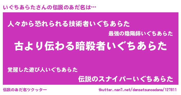 | 意味不明あだ名 | 『永久保存いぐちあらた』 |