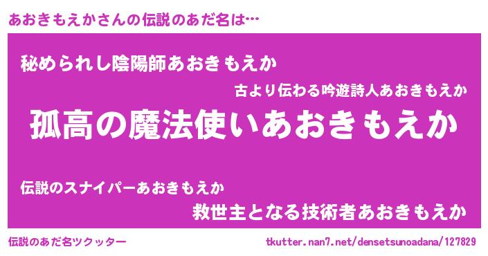 | 男性向けラノベタイトル風あだ名 | 『アオキモエカスレイヤー』 |