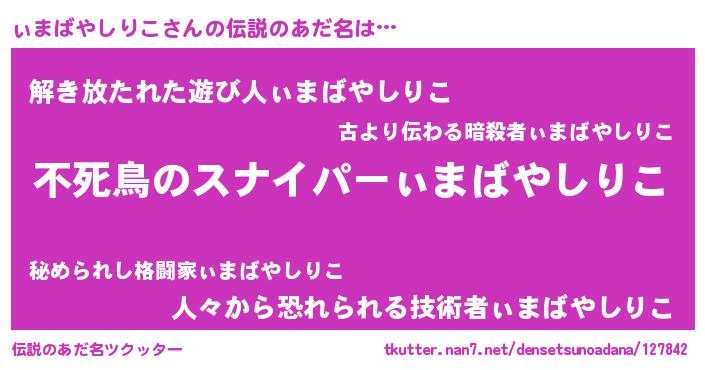 | 胡散臭い通販商品みたいなあだ名 | 『モテモテ間違いなし霊験あらたかなお札…その名も「ぃまばやしりこ」』 |