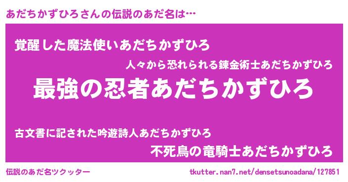 | ファンタジー風あだ名 | 『エターナルアダチカズヒロー』 |